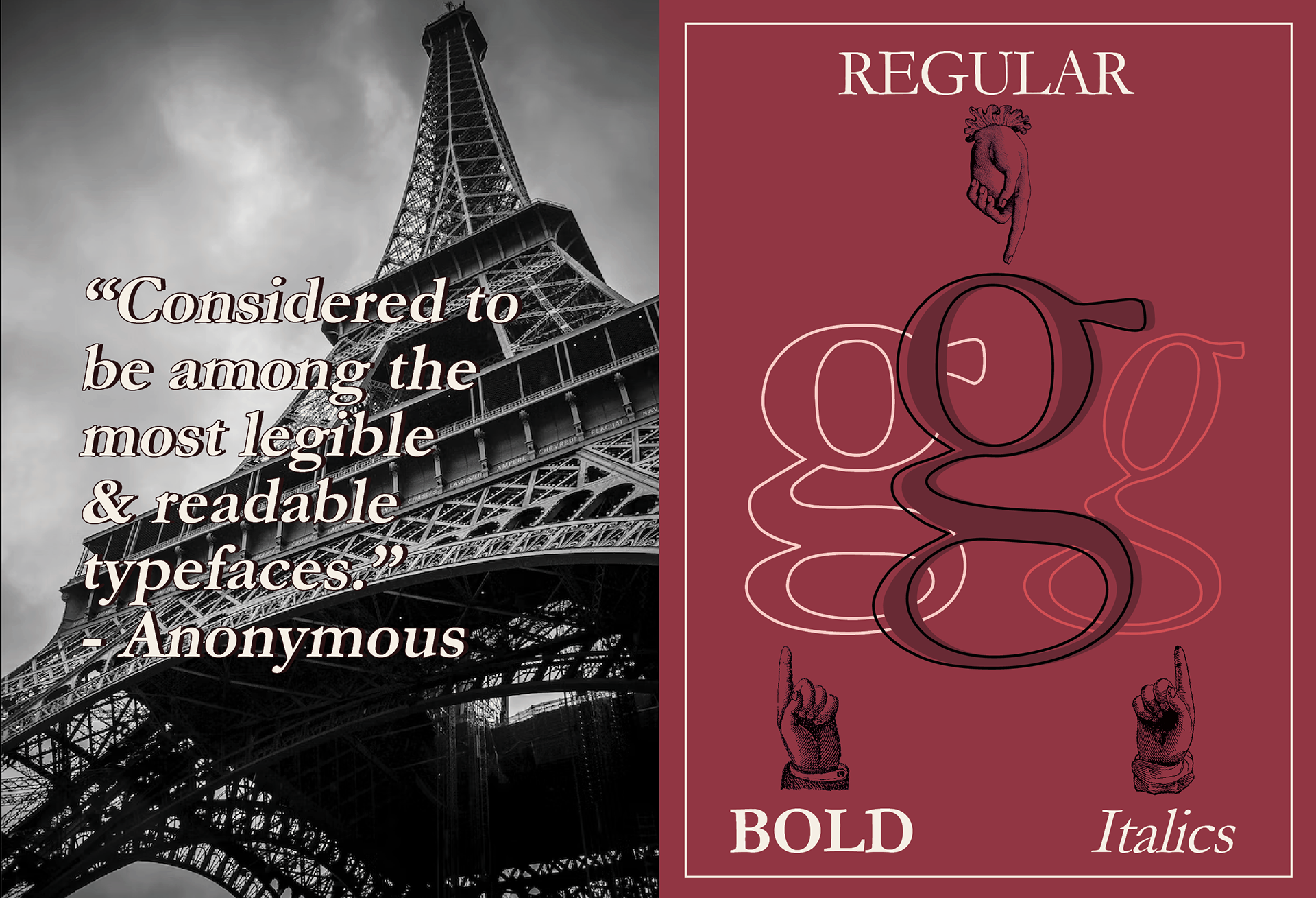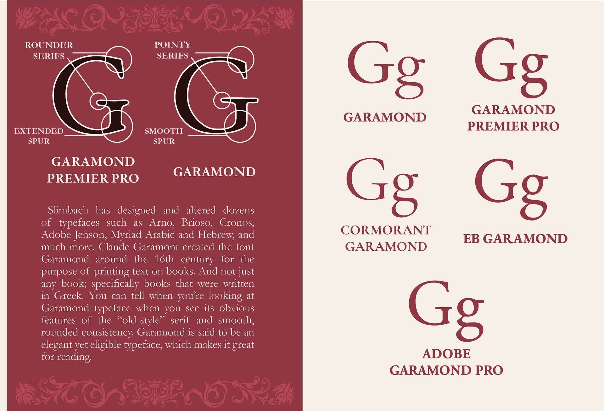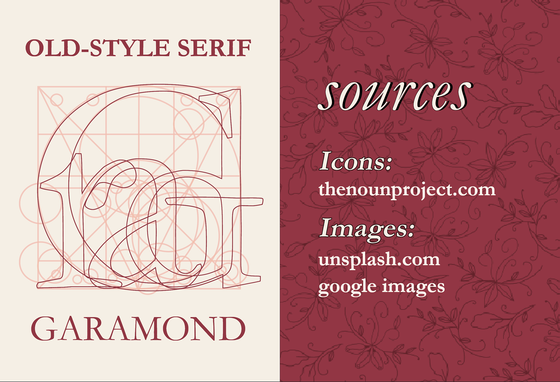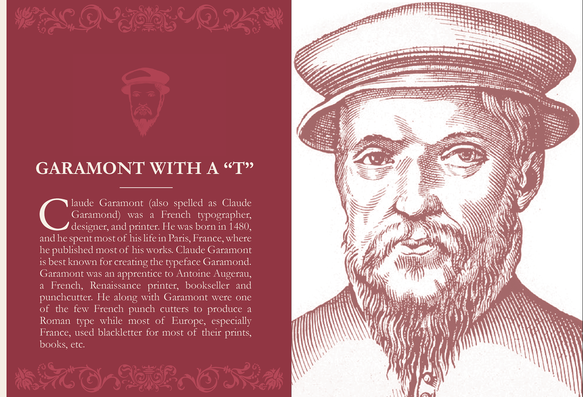 For this project, I selected the font Garamond, made by Claude Garamont. I wrote an essay about his early life, how Garamond has evolved, and how it is still used up to today. The process involved studying Type + Image, Designed Quote, Font/Alphabet, and Type Specimen.